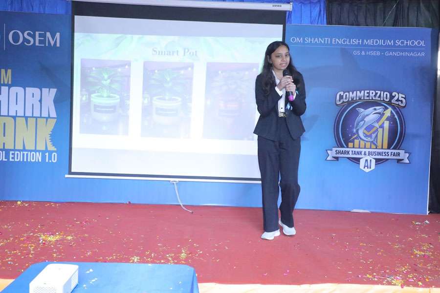Om Shanti English Medium (OSEM) GSEB School marked a milestone in experiential learning by successfully organizing “Shark Tank 1.0”, the first-ever entrepreneurial initiative of its kind in the Morbi district, followed by an inspiring Commerce Fest Business Fair.